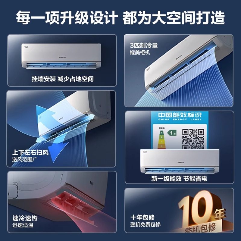 格力空调3匹大挂机清炫风一级能效变频省电冷暖壁挂式客厅挂机
