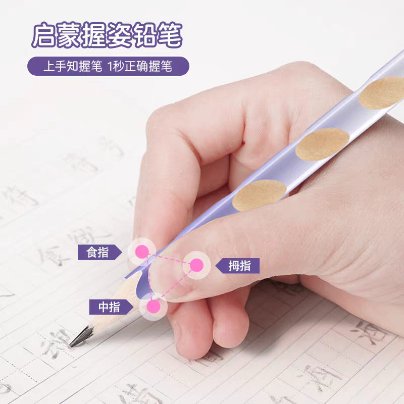 得力洞洞铅笔小学生专用无毒一年级幼儿园矫正握姿hb加粗2比b正姿粗杆初学者三角杆儿童写字练字考试用品文具