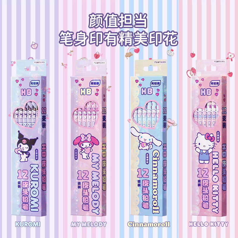三丽鸥美乐蒂库洛米凯蒂猫卡通HB铅笔橡皮头书写工具小学生30支可爱幼儿园初学者写字套装玉桂狗带橡皮无铅
