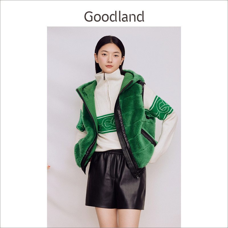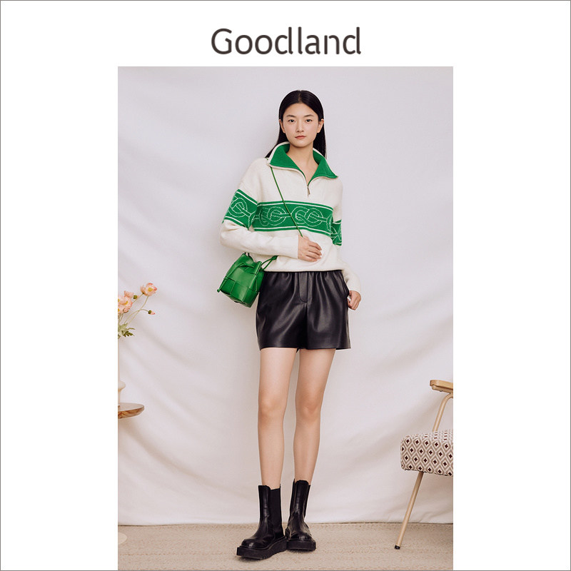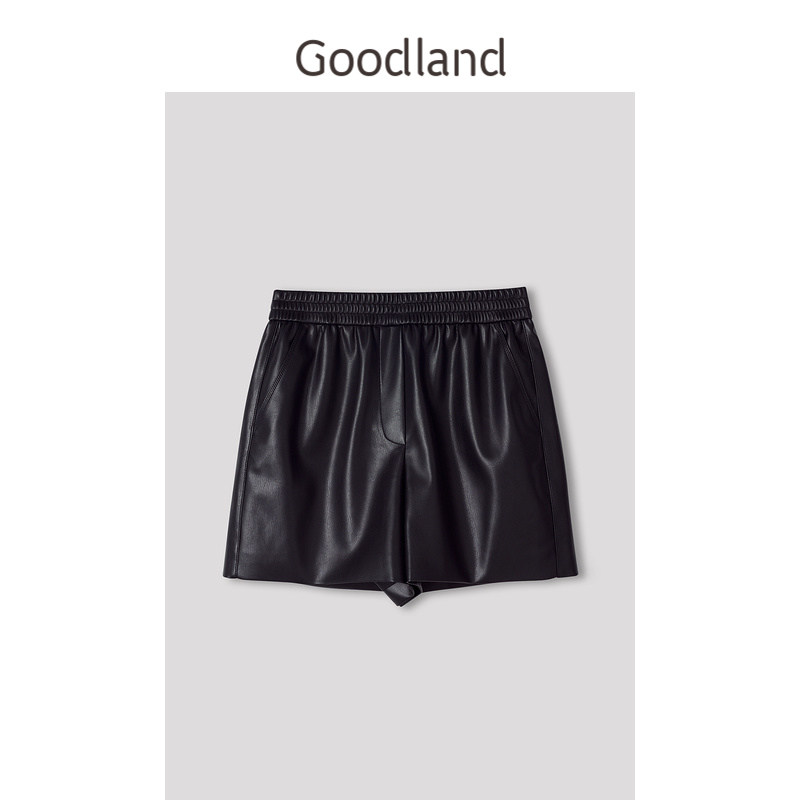 Goodland美地女装冬季环保PU皮休闲裤摩登质百搭短裤
