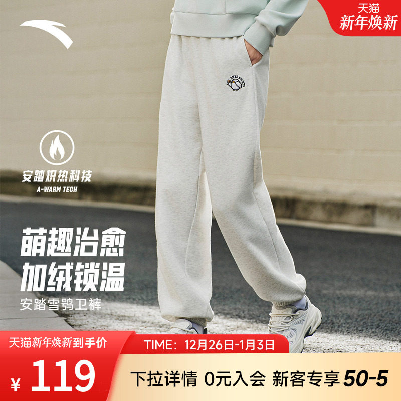 安踏动物星球长裤女款2025新款秋冬加绒保暖休闲裤运动户外束脚裤