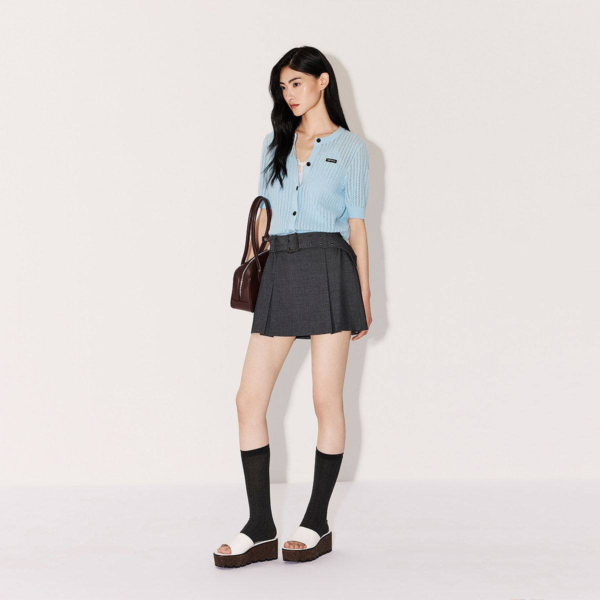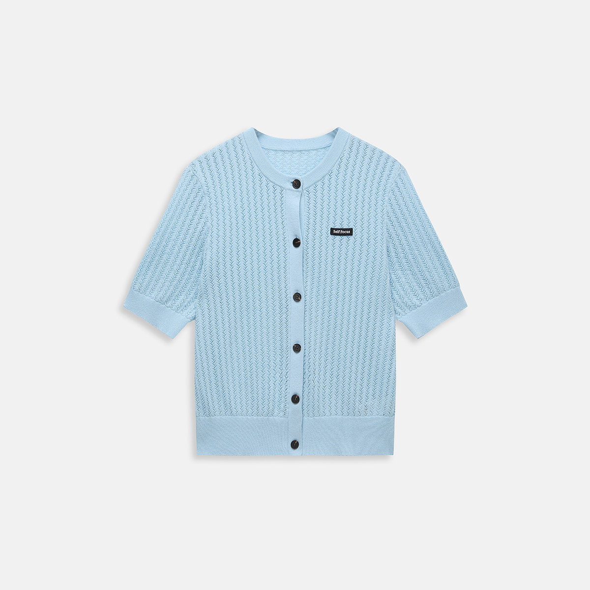 【新品】OCHIRLY欧时力 针织外套2026春夏镂空绣章防晒纯棉短袖