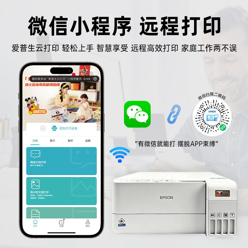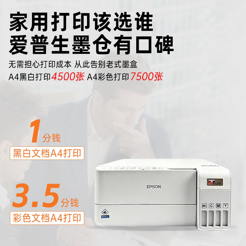 爱普生彩色墨仓式喷墨无线L3256家用打印机复印扫描一体机L3258