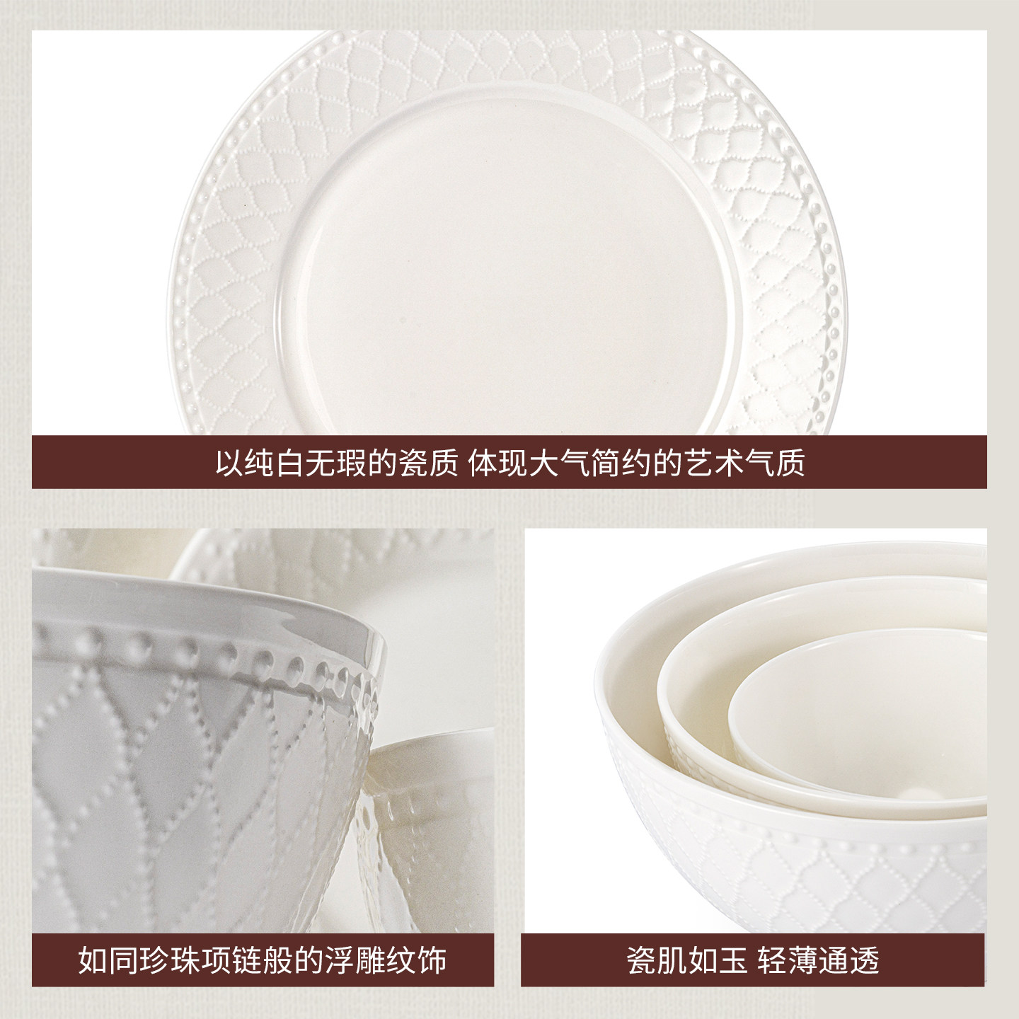玛戈隆特枫丹白露骨瓷碗新婚礼品碗具碗盘碗碟套装家用浮雕餐具