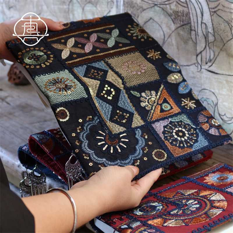 真我 流金织梦 刺绣民族风手账本手帐手工布书衣日记笔记本a5a6