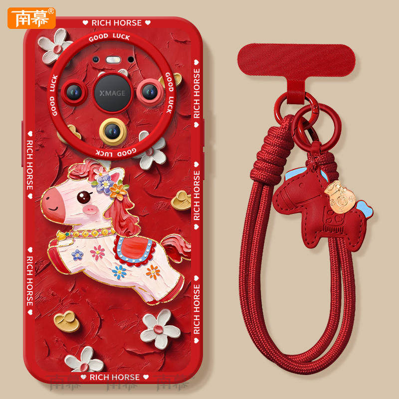 鲜花小马适用华为mate80手机壳promax新款mate70pro套2026马年mete60防摔50硅胶mata40新年款por过年MT30红色