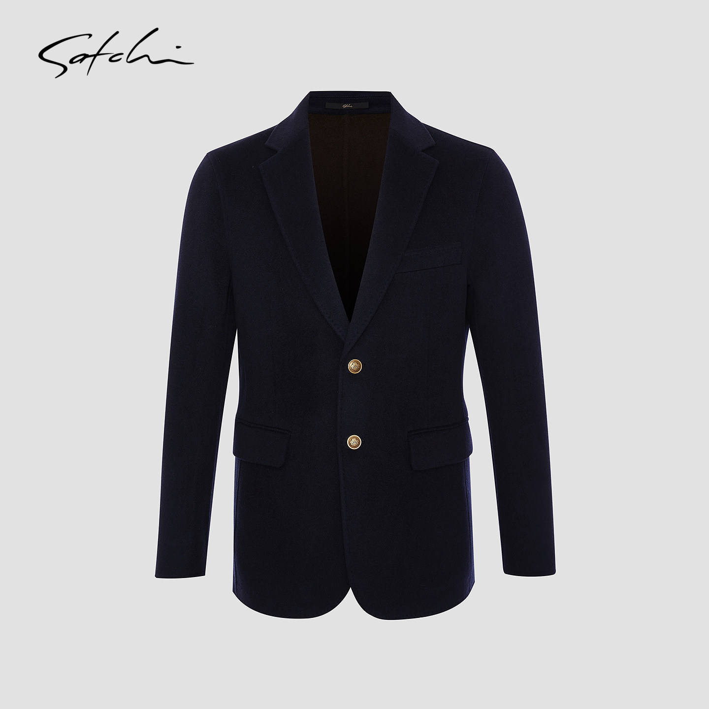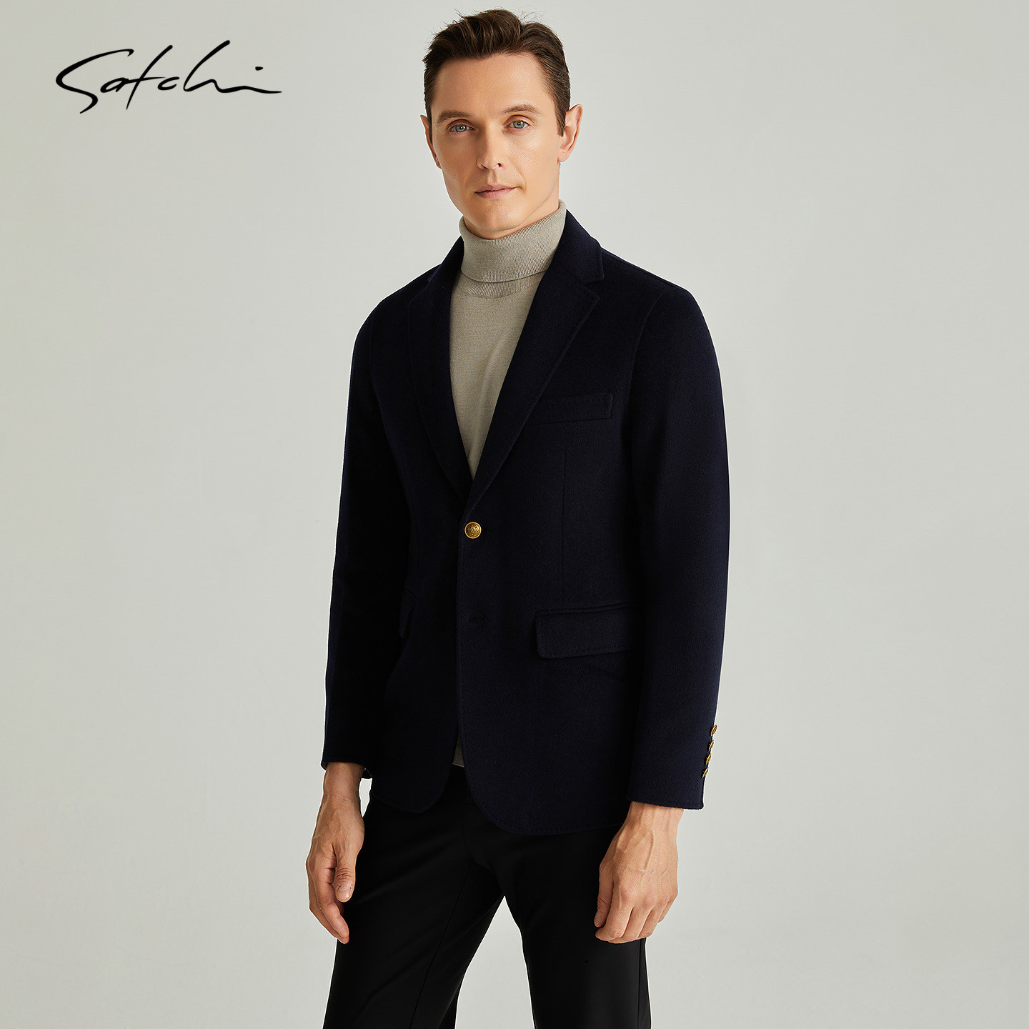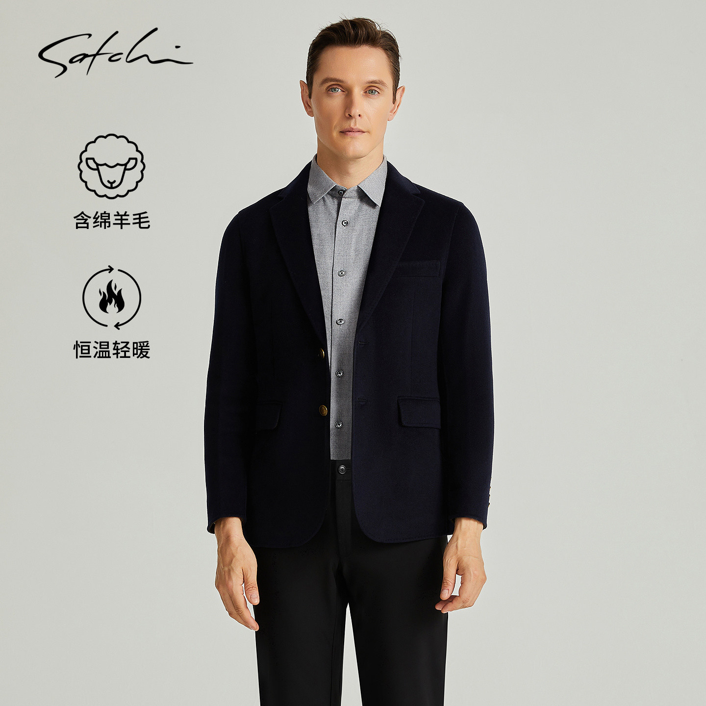 [黑金100%羊毛]SATCHI沙驰男装男士毛呢大衣春季商务短款西装外套