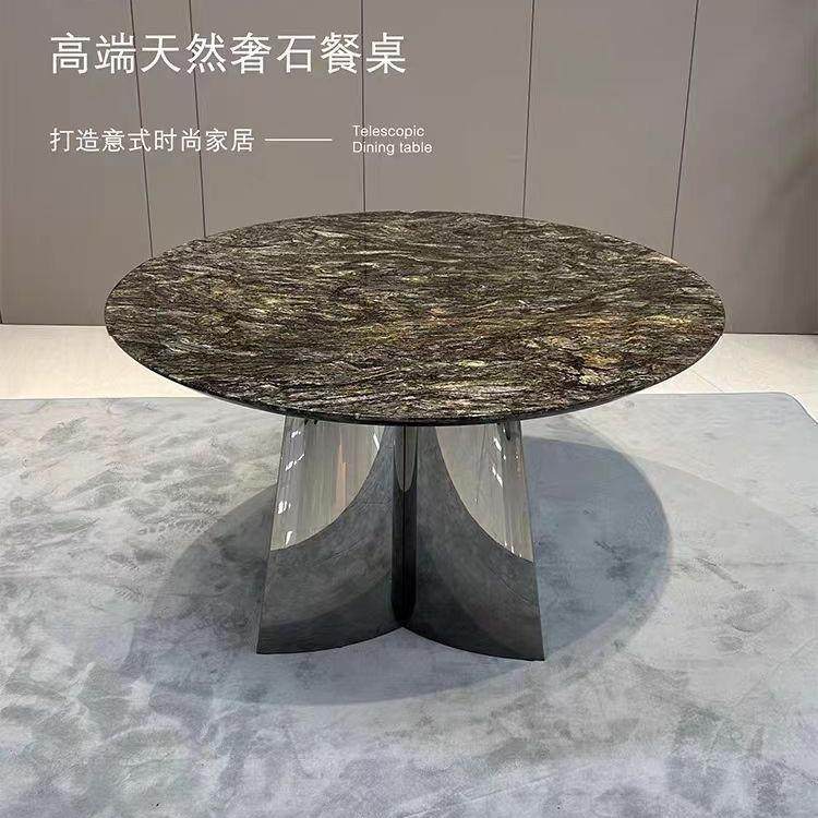 高端现代设计师圆形天然大理石餐桌大象白铂金钻奢石餐桌圆形饭桌