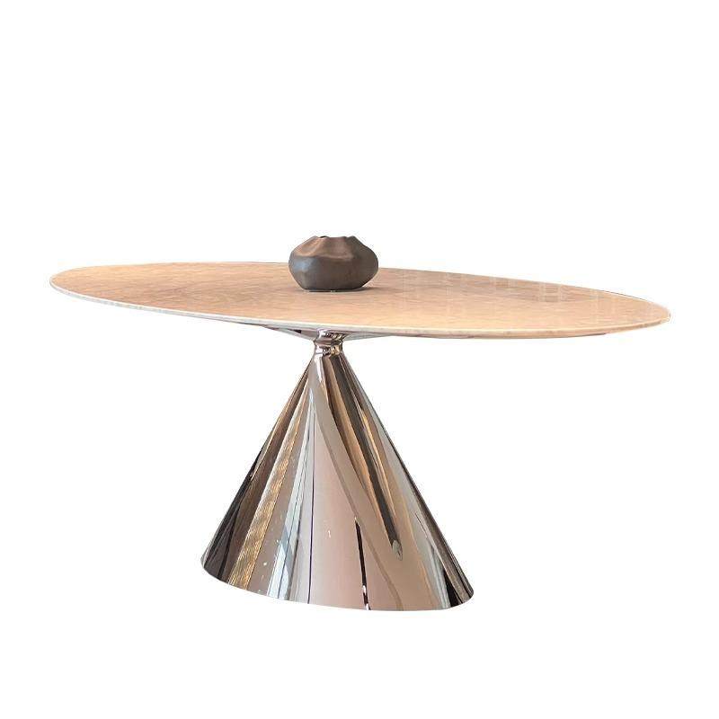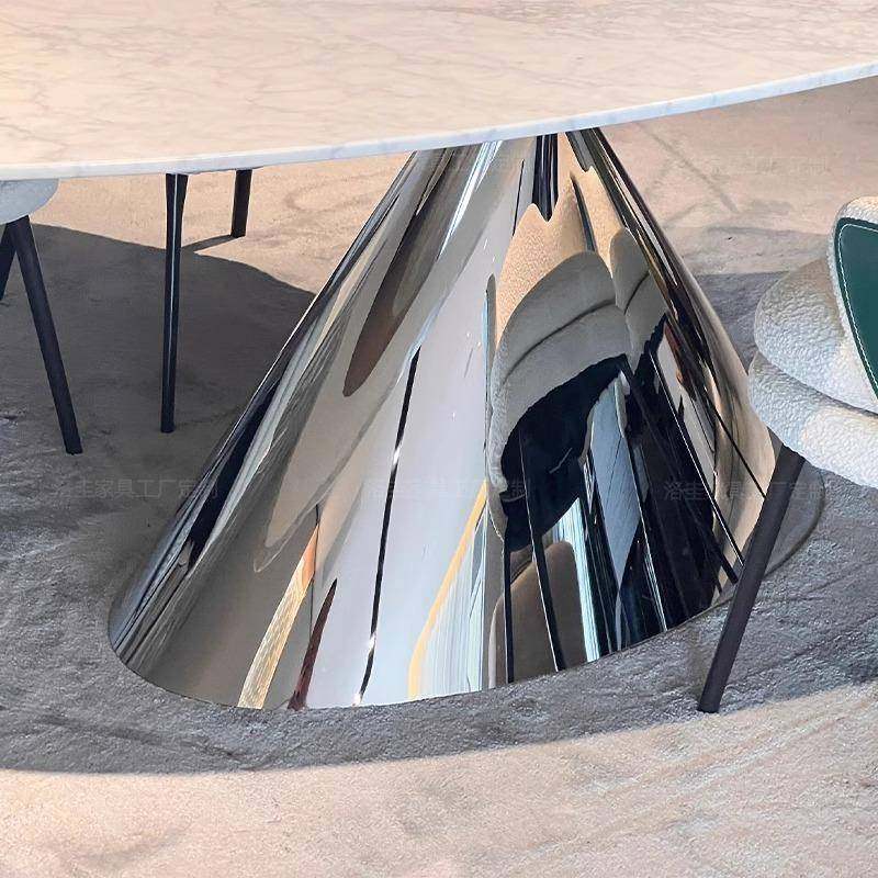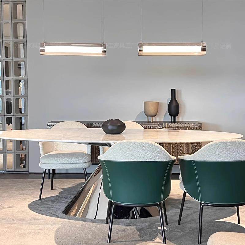 意式极简飞碟天然大理石餐桌进口奢石椭圆形高端别墅客厅奢石饭桌