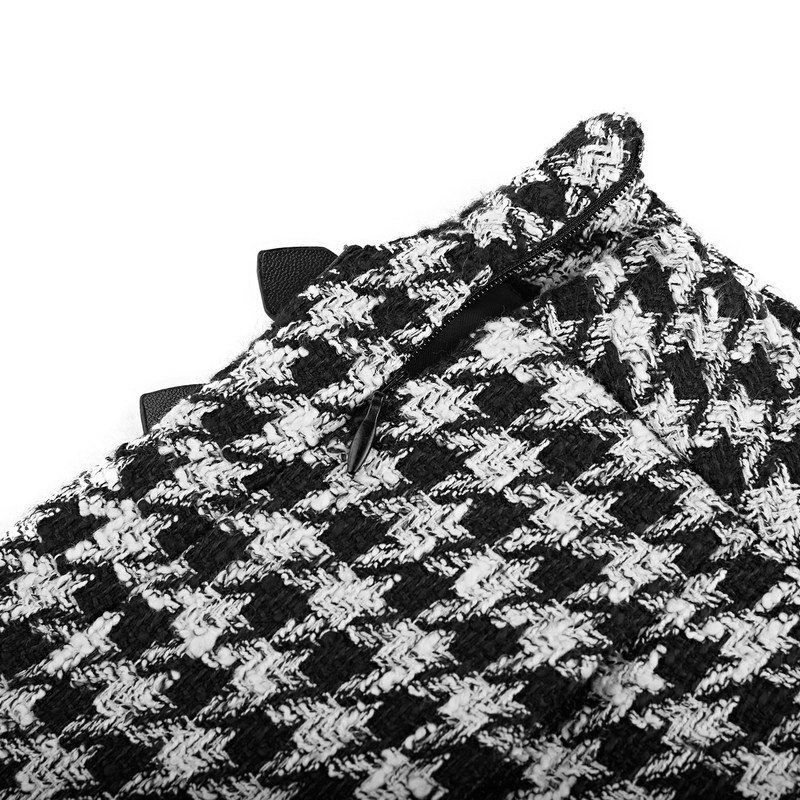 三福格子长裙女2025新款冬季气质流苏摆不规则半身裙子女装509092