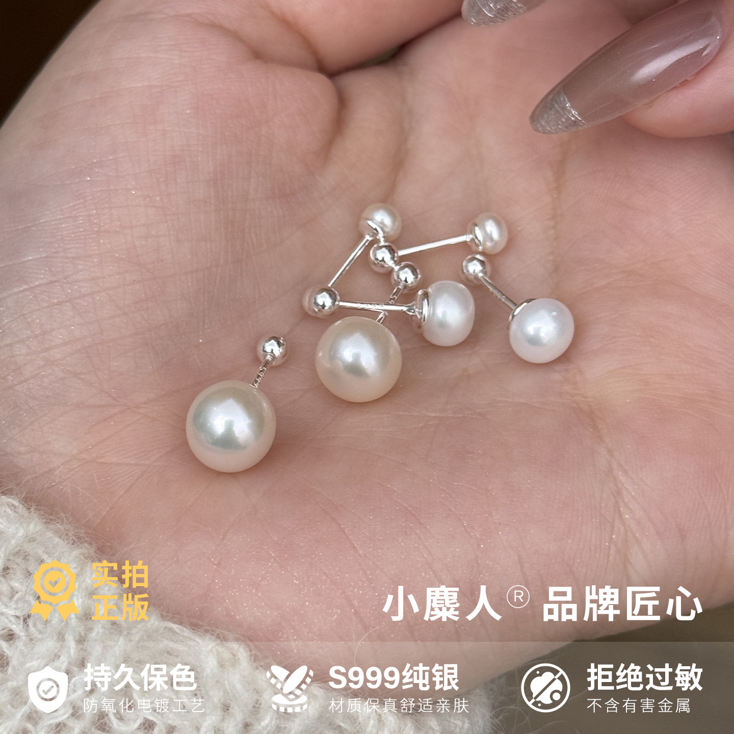 小麋人999纯银淡水珍珠防丢耳钉女耳环耳饰简约气质2025新款精致
