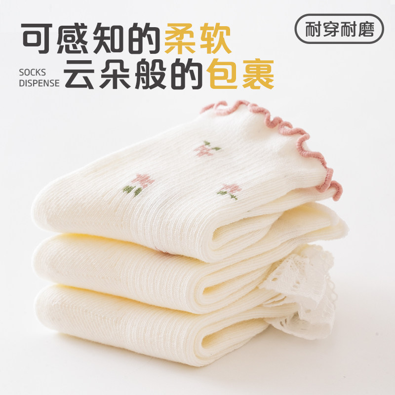 婧麒婴儿袜子春秋季新生儿无骨花边公主袜棉袜初生宝宝无骨中筒袜