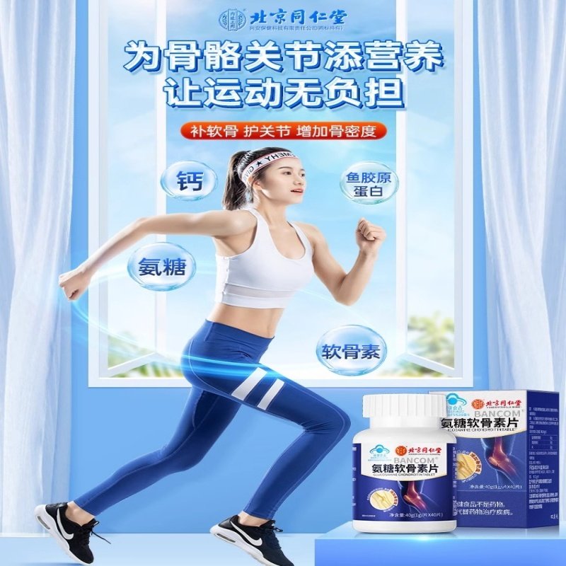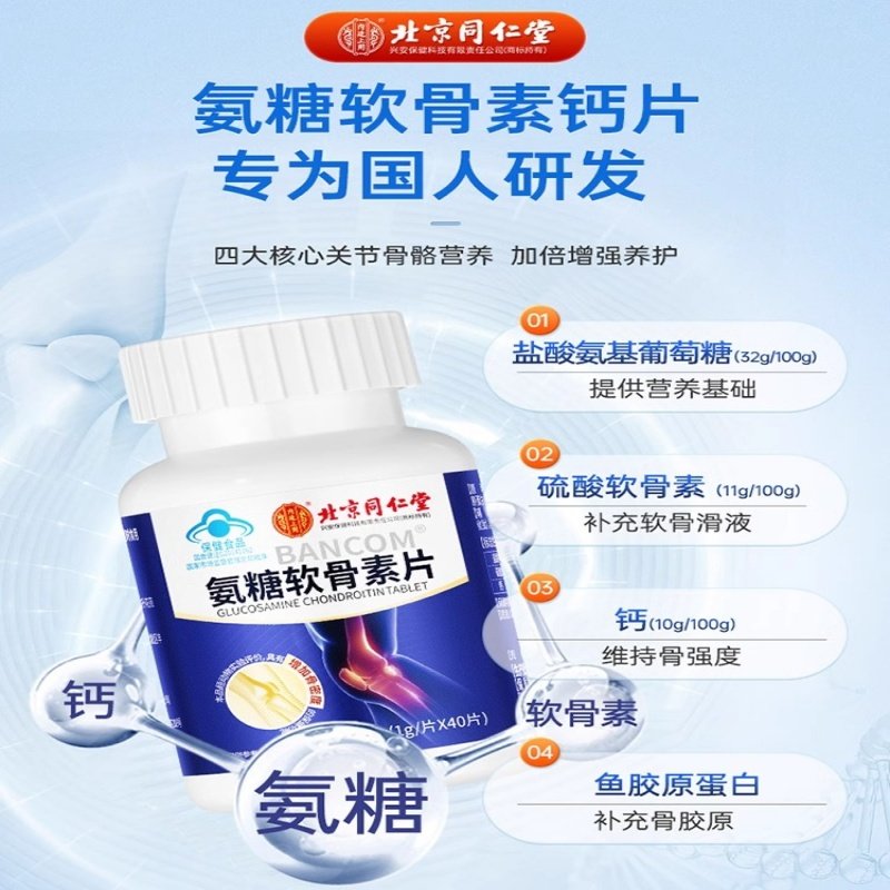 北京同仁堂氨糖软骨素钙片中老年人护关节补钙氨糖腰腿酸膝盖疼痛