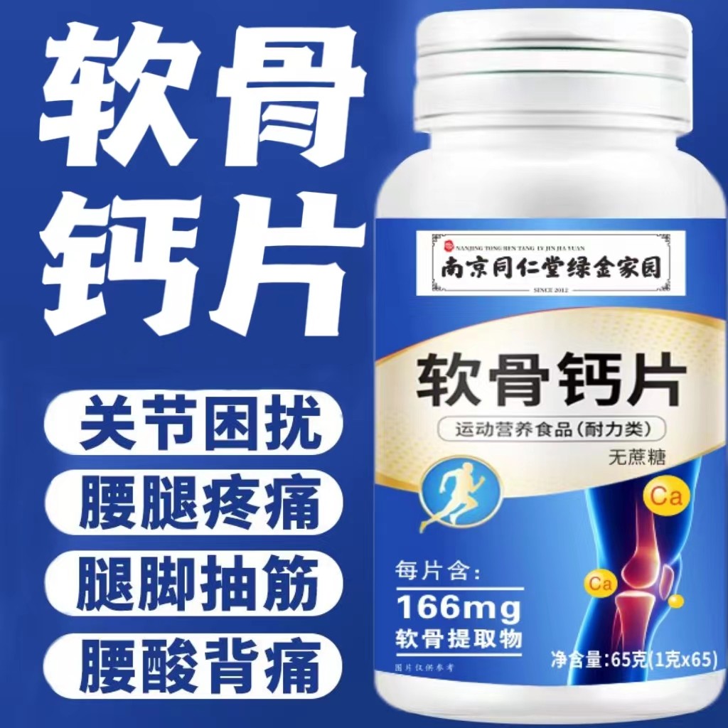 南京同仁堂软骨钙片中老年成人关节疼痛补钙腿脚抽筋压片温和正品