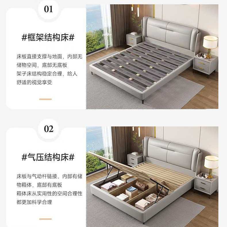 意式极简皮艺床主卧1.8米双人大床家用1.5米单人纳帕皮储物结婚床