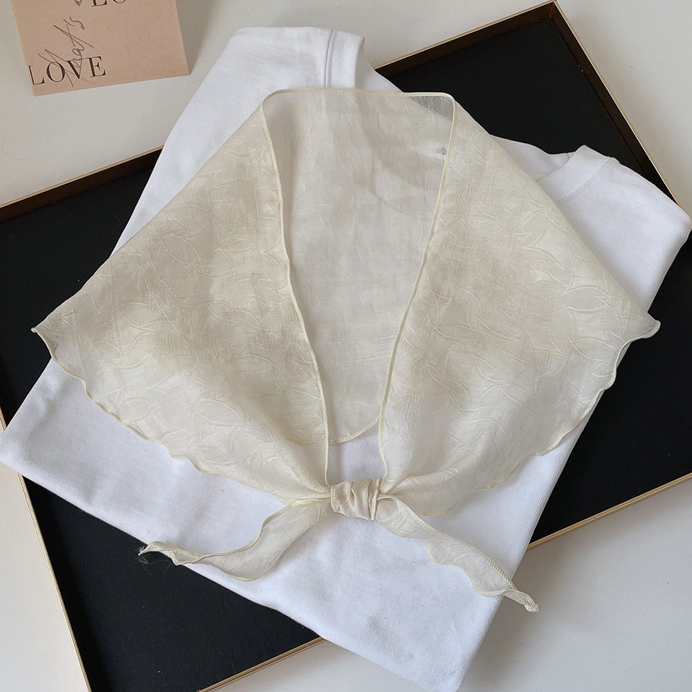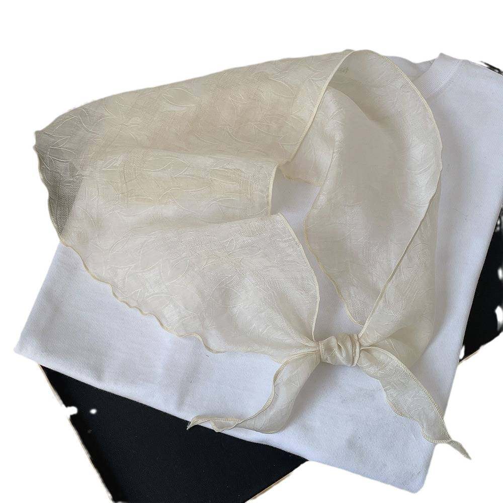 森系清新亚麻天丝提花三角巾女春夏百搭透气领巾头巾空调房脖围巾