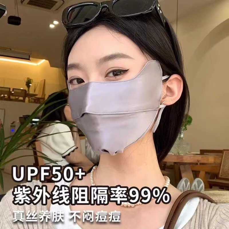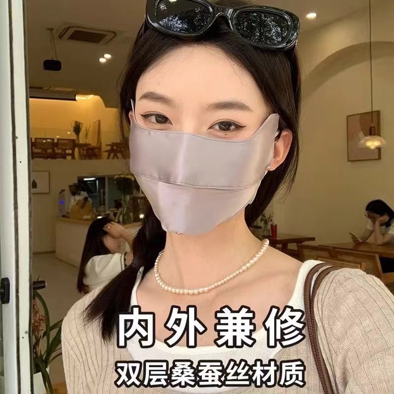 100%桑蚕丝透气真丝防晒口罩女全脸防紫外线遮阳面罩户外骑行夏季