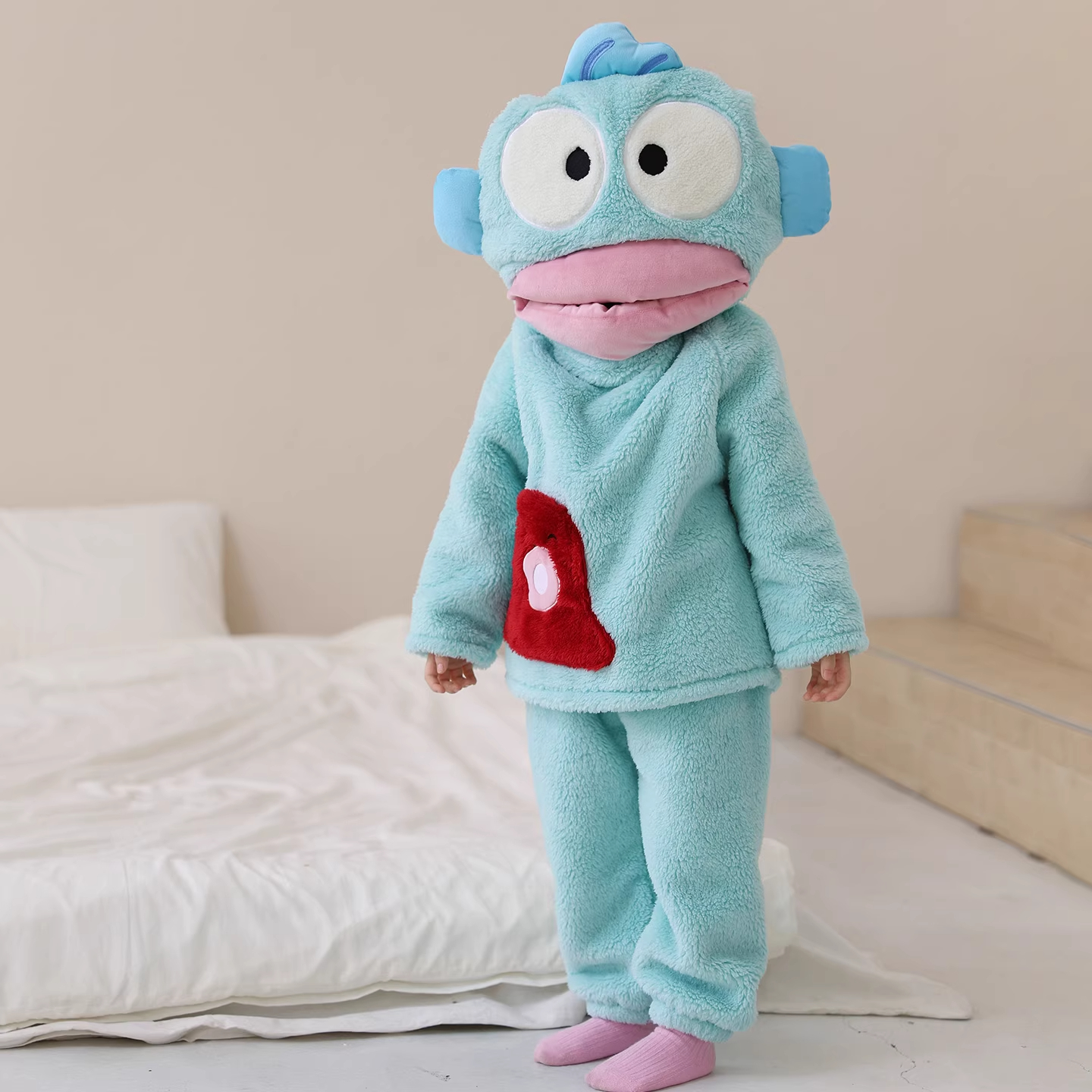 儿童丑鱼连体睡衣秋冬季珊瑚绒加厚睡袍卡通大嘴鱼搞怪家居服亲子