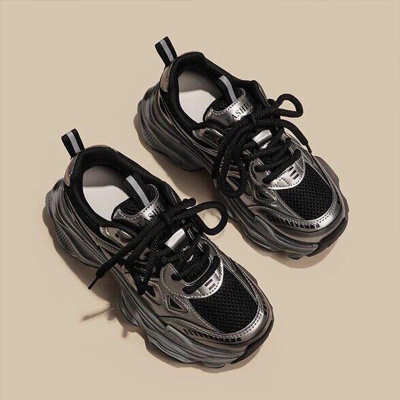 黑色老爹鞋女款2026新款爆款春季厚底松糕增高小个子休闲运动女鞋