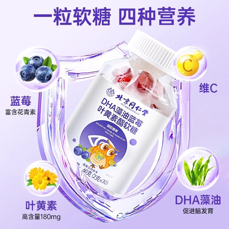 北京同仁堂DHA蓝莓叶黄素酯软糖儿童成人护眼专用官方旗舰店正品
