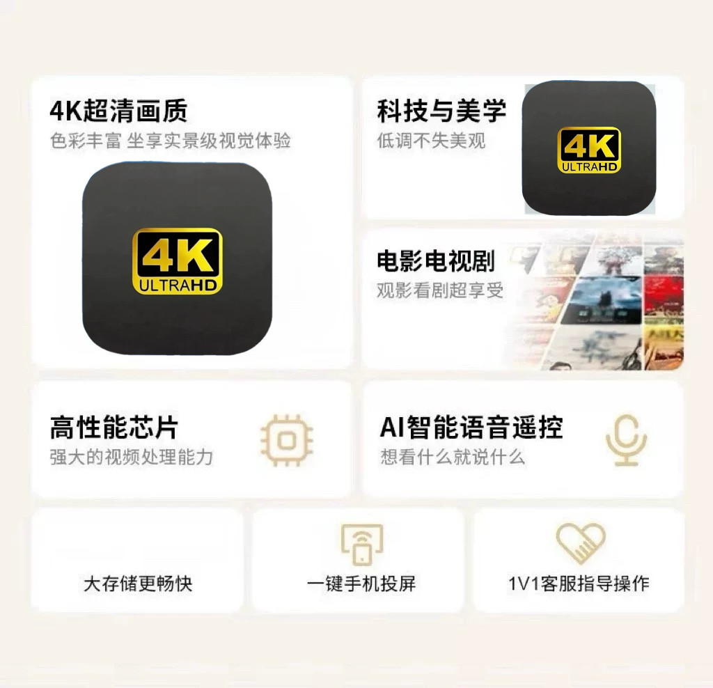 新款4K智能网络机顶盒高清投屏家用电视盒子无线wifi全网通播放器