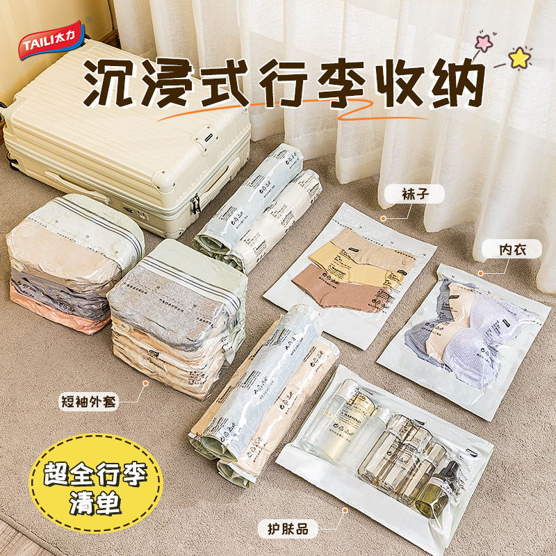 太力旅行手卷收纳袋抽真空压缩衣服羽绒服行李箱专用旅游必备神器