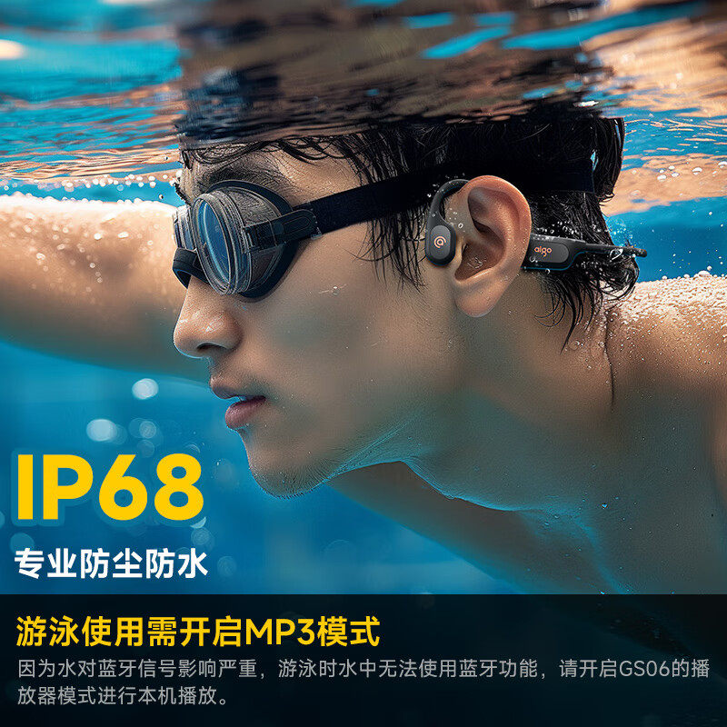 爱国者骨传导蓝牙运动游泳耳机IP68级防尘防水自带内存开放无线式
