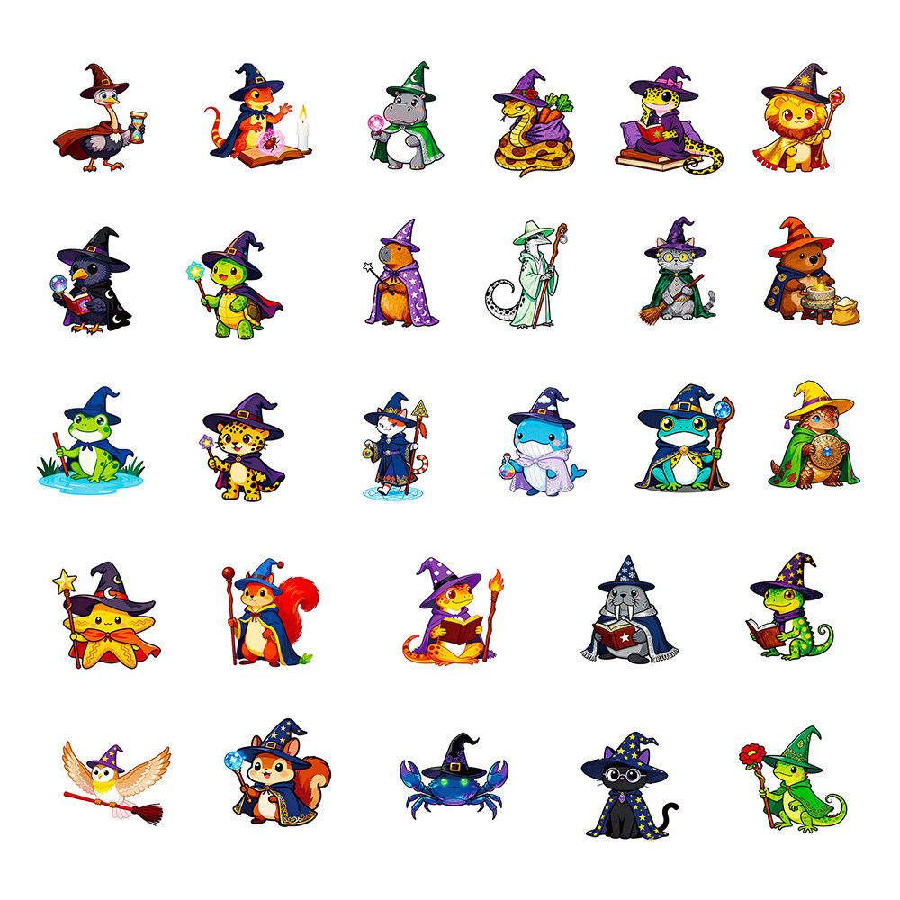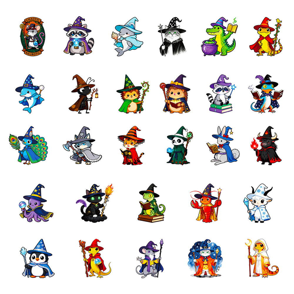 112张动物巫师贴纸卡通可爱趣味猫咪企鹅乌龟魔法师diy素材装饰贴