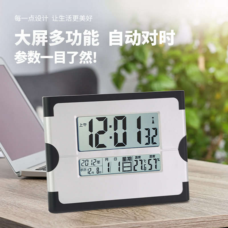 智能电波闹钟台钟 创意挂立式客厅电子钟表 万年历自动对时桌面钟