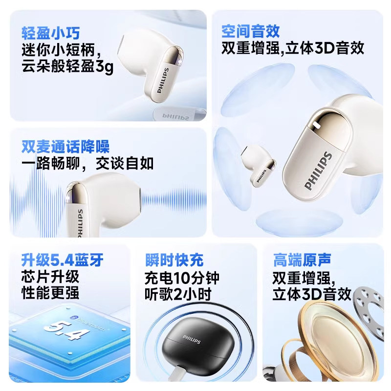 飞利浦TAT2169无线蓝牙耳机半入耳式跑步运动降噪通话新款圣诞礼