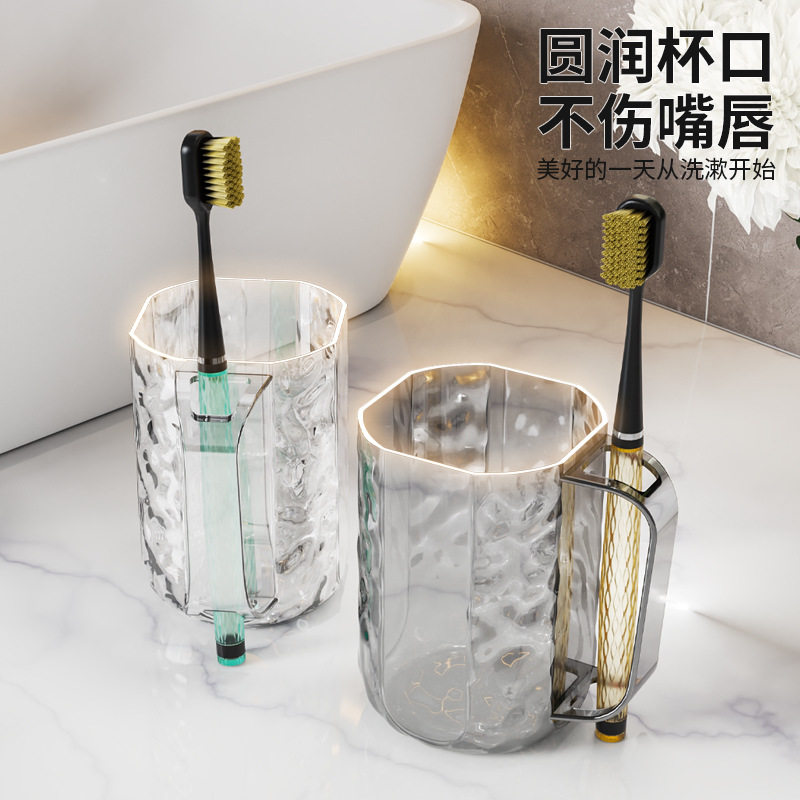 高颜值情侣刷牙杯冰川纹漱口杯透明牙刷杯轻奢高级感多规格