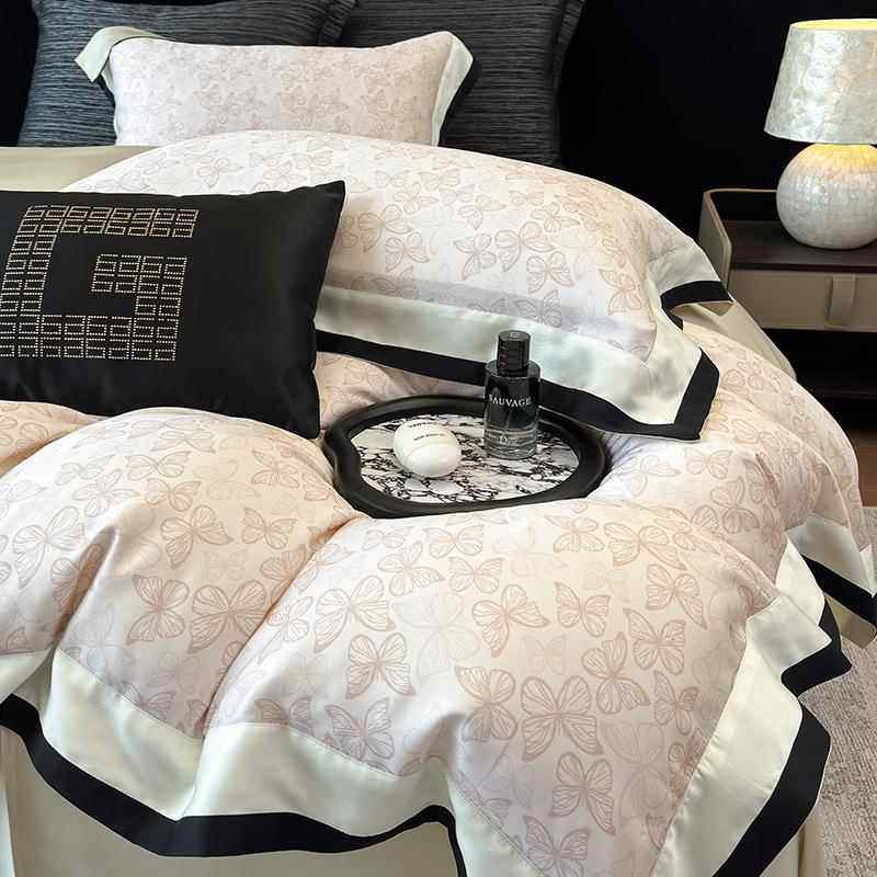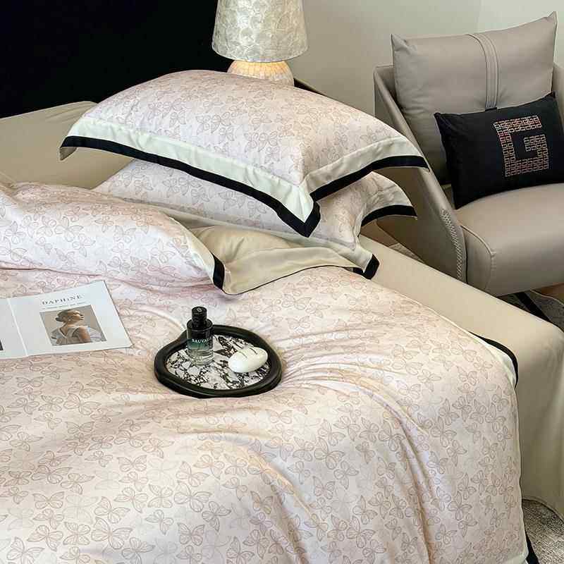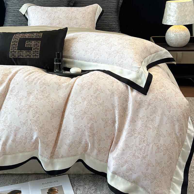 轻奢夏季60s兰精天丝四件套凉感丝滑蝴蝶印花被套床单1.8裸睡床品