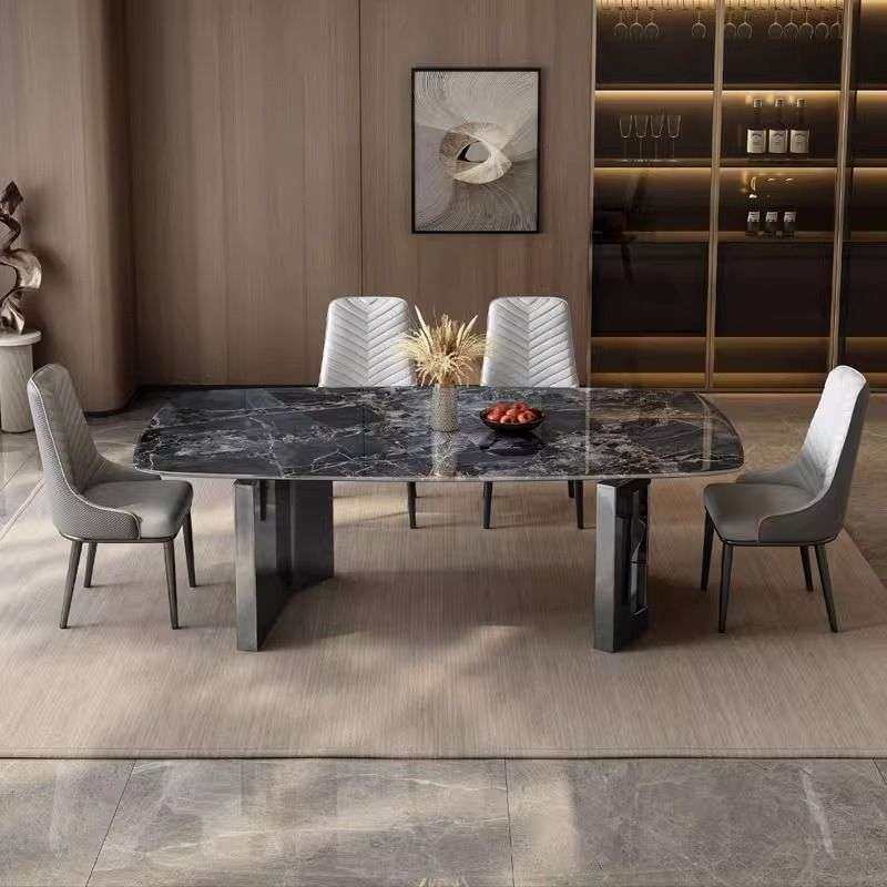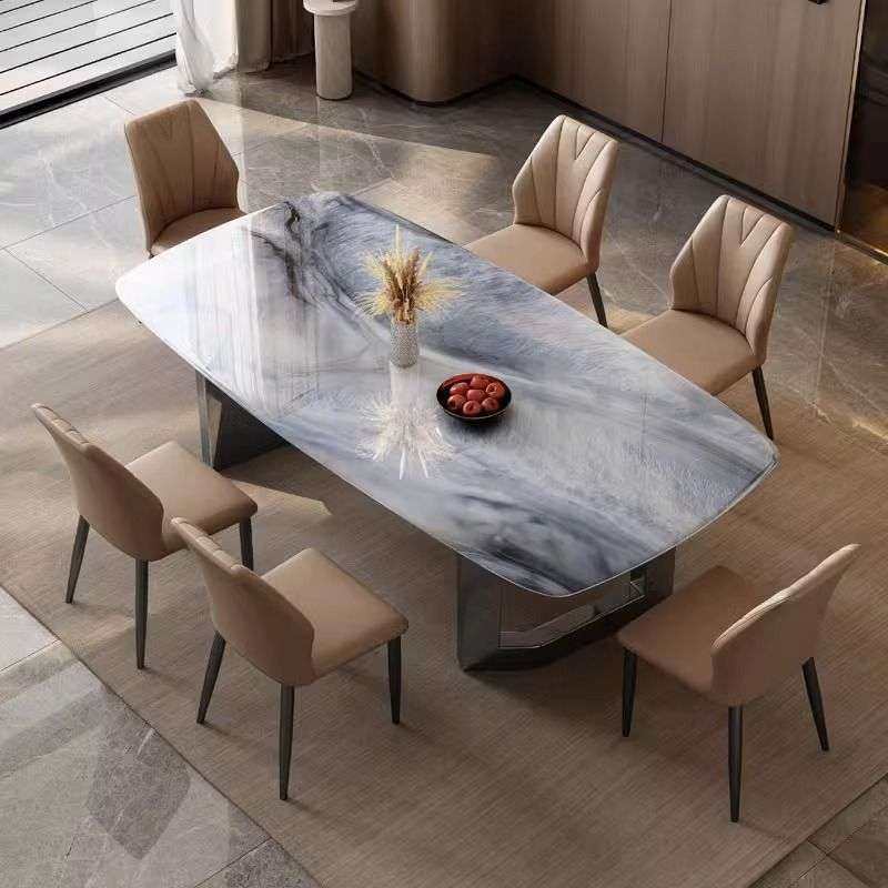超晶石餐桌意式极简天然大理石饭桌轻奢长方形奢石家用方桌子