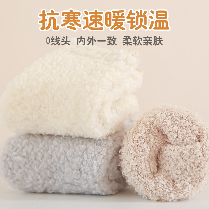 婧麒婴儿袜子冬季婴幼儿宝宝珊瑚绒中筒袜加厚保暖儿童袜子居家袜