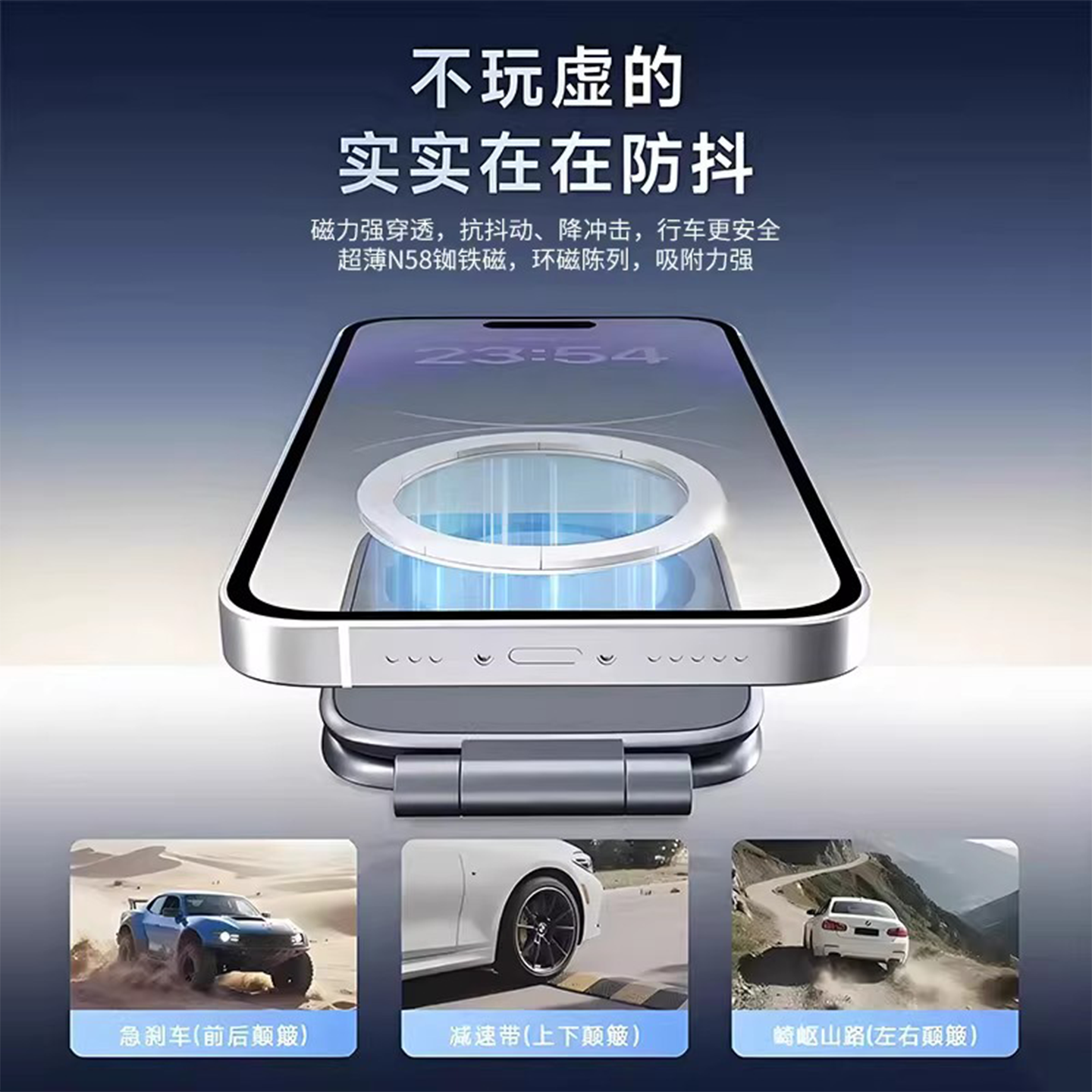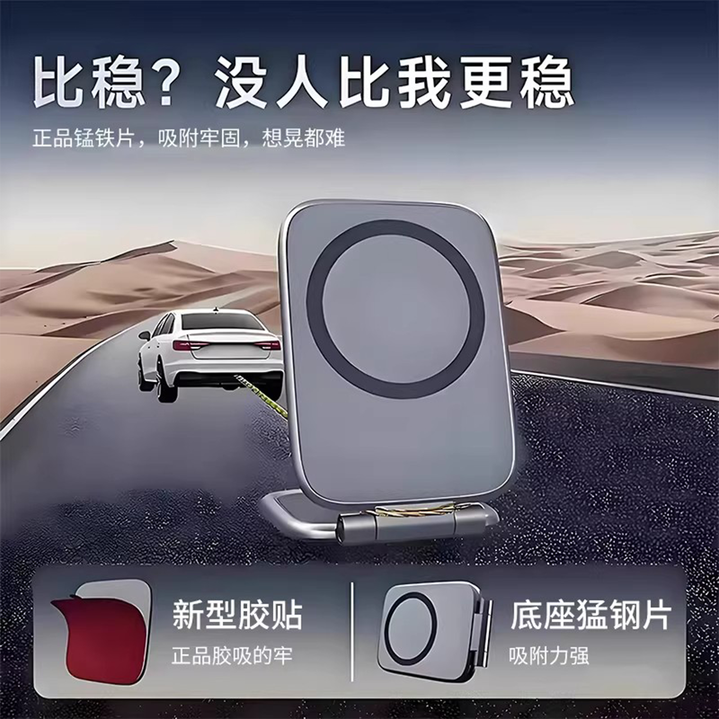 真空吸附磁吸车载手机支架2025新款吸盘车内导航手机架magsafe无线磁吸伸缩折叠便携架子墙壁通用神器
