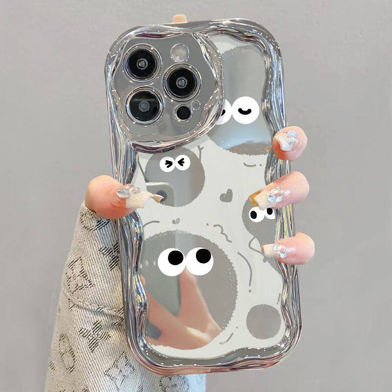 电镀银搞怪表情适用苹果15手机壳iPhone14新款13/12MINI简约11pro可爱xsmax情侣7/8p镜面14plus卡通xs/xr小众