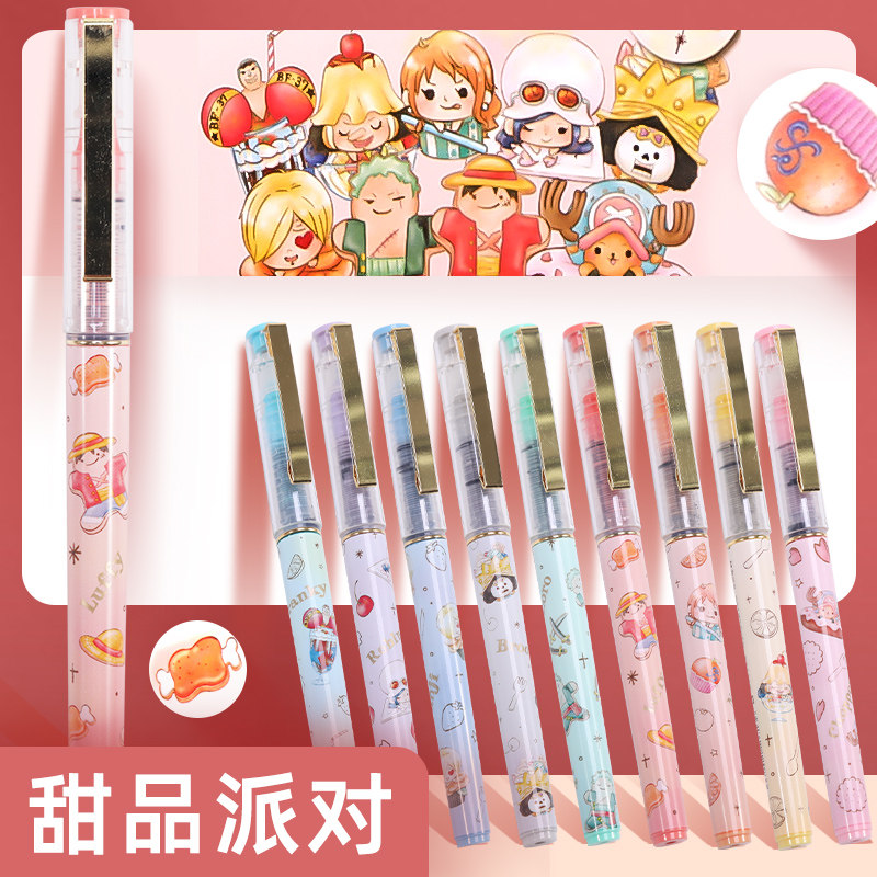 晨光航海王甜品派对盲盒笔0.5直液式走珠笔碳素黑签字学生考试用速干针管水笔海贼王路飞山治动漫限定款文具