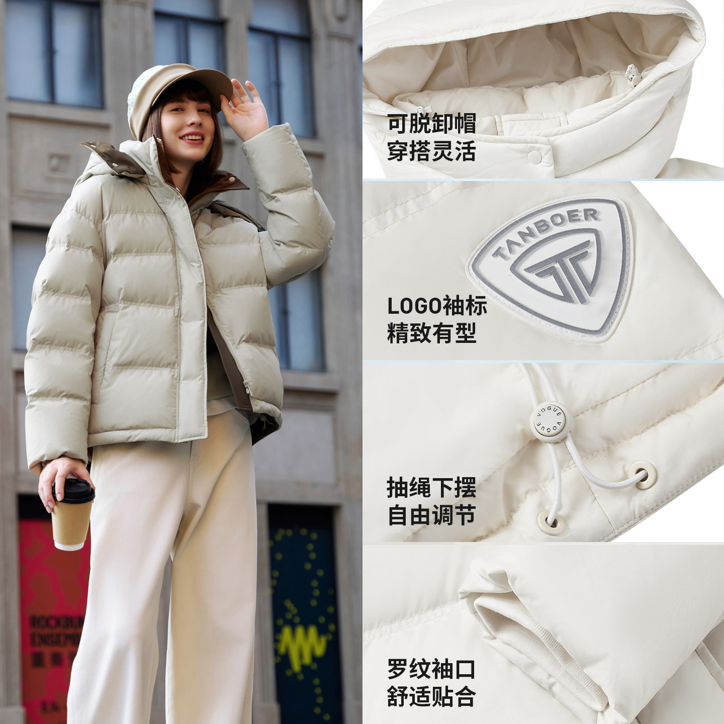 坦博尔25秋冬新款运动羽绒服女短款户外保暖加厚时尚休闲外套显瘦