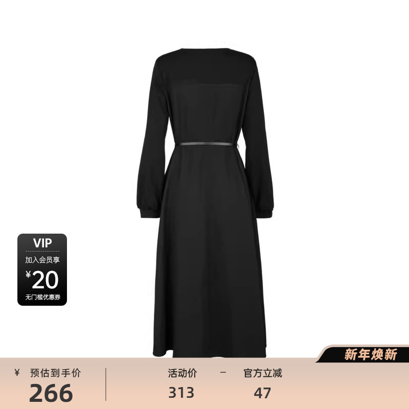 sdeer圣迪奥女装复古圆领收腰拼接长袖连衣裙S243Z12A7