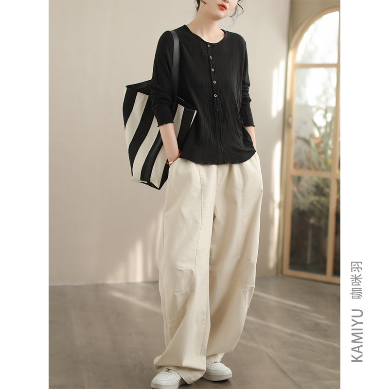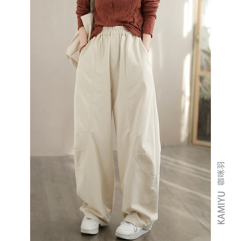 咖咪羽休闲裤女春装2025新款全棉女士洋气米色宽松直筒女装裤子
