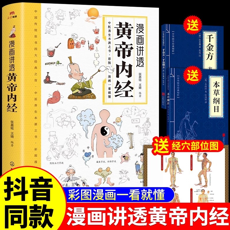 抖音同款黄帝内经漫画图解原版正版漫画版讲透白话文皇帝内经儿童版四季养生法中医入门书籍全套四大名著倪海厦t食疗医书经典国学