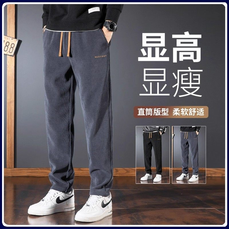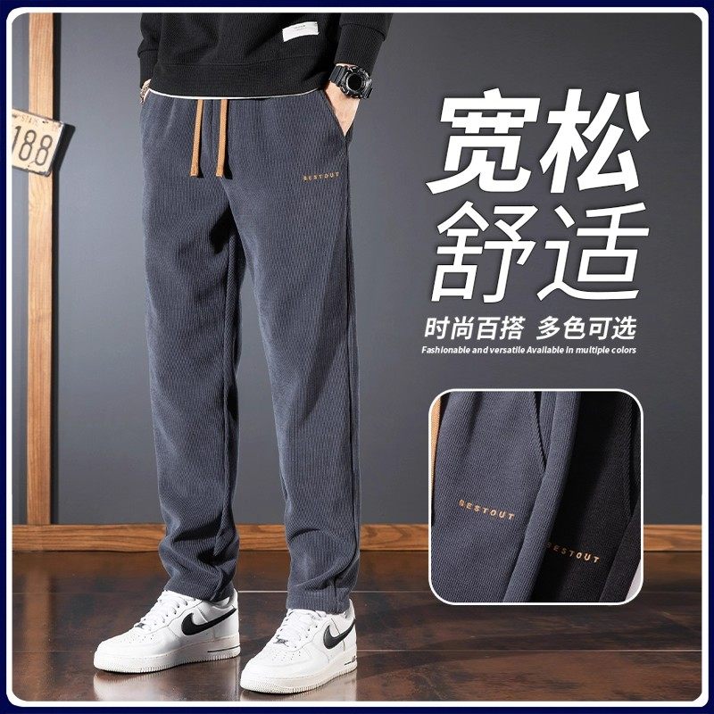 男士秋冬休闲裤宽松直筒运动长裤秋冬加绒卫裤2025冬季新款男裤子