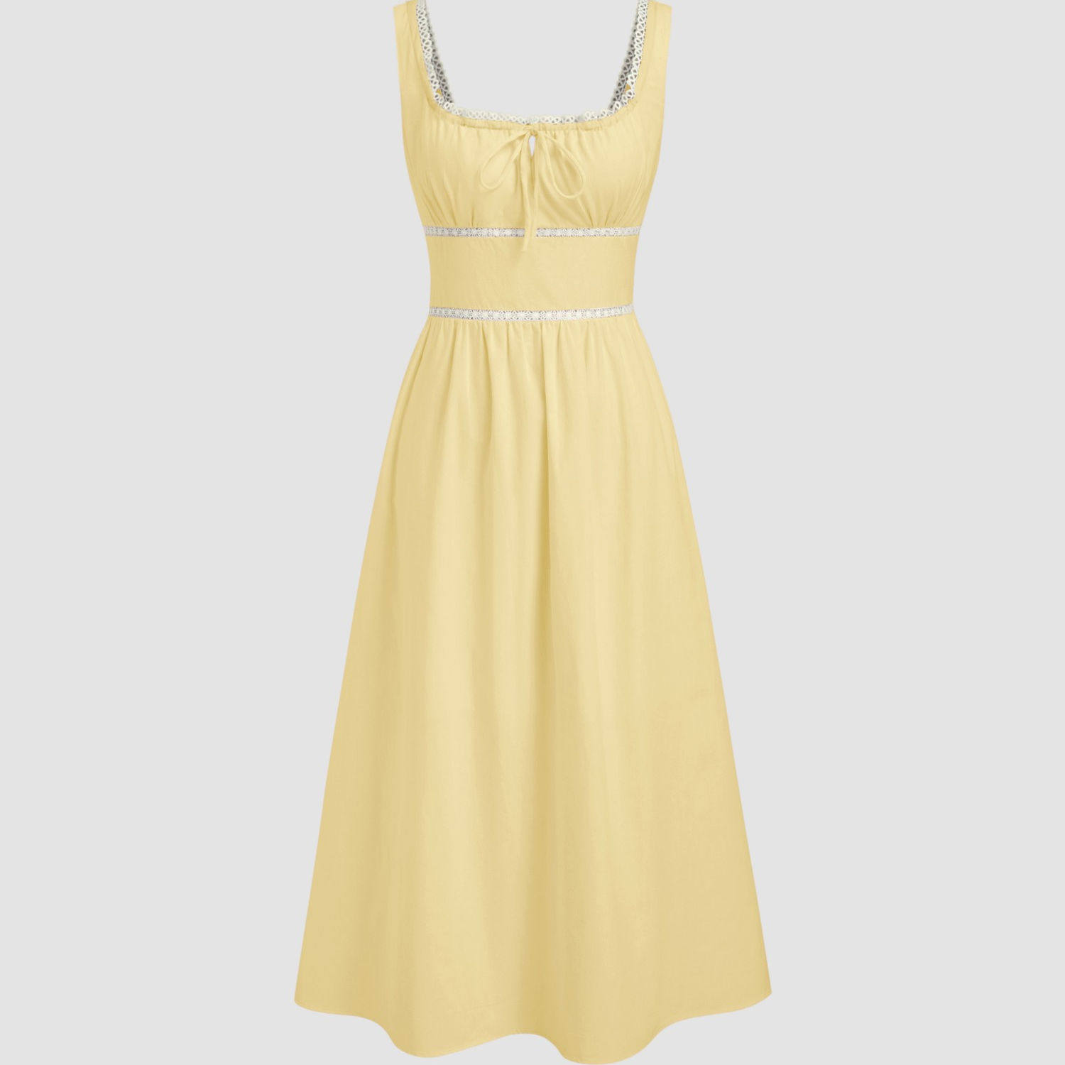 CIDER 夏季女装棉质方领系带褶饰长吊带连衣裙 114645614