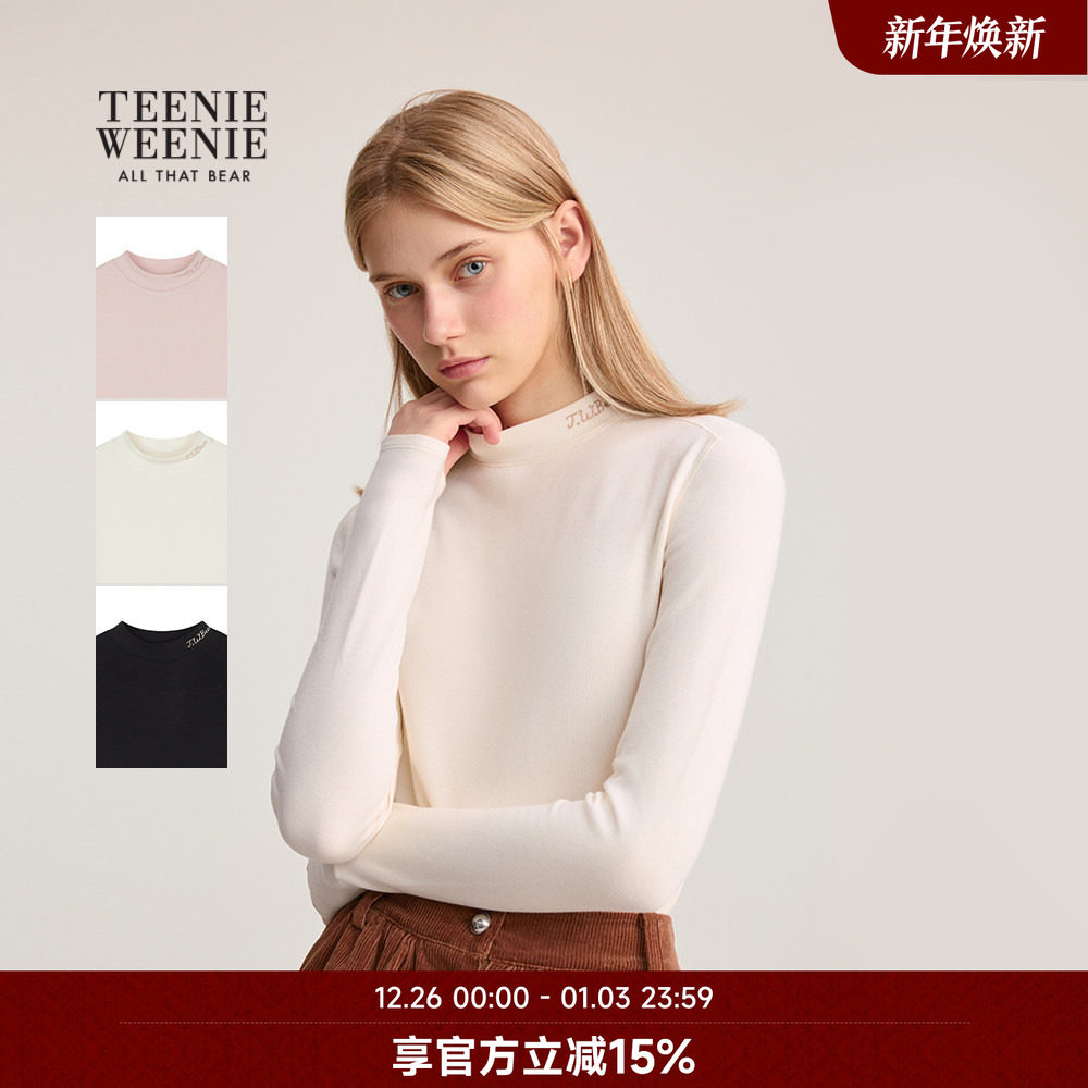 TeenieWeenie小熊奥莱T恤2025年秋季新款小高领抓绒打底长袖上衣