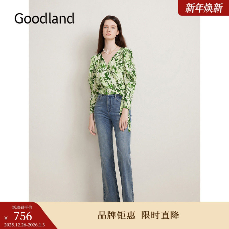 【真丝系列】Goodland美地春季桑蚕丝衬衫诗意碎花上衣