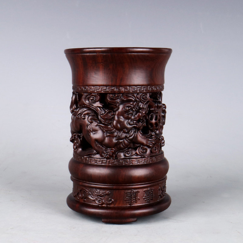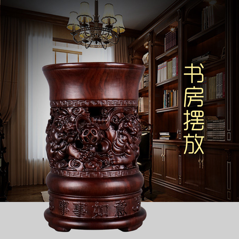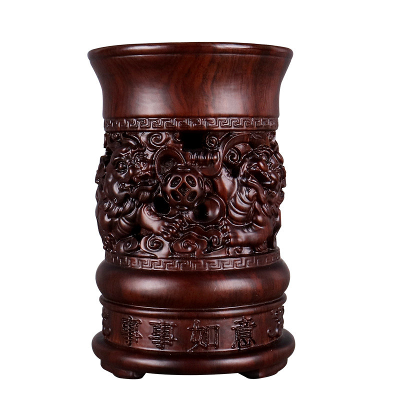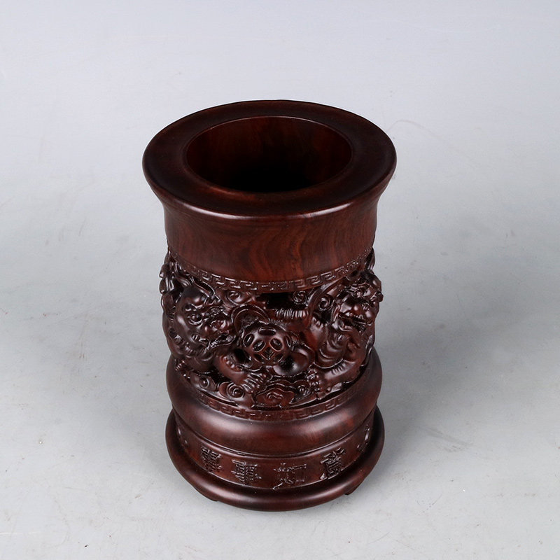 黑檀木木雕笔筒实木木质创意木制办公室装饰品教师节送老师的礼物