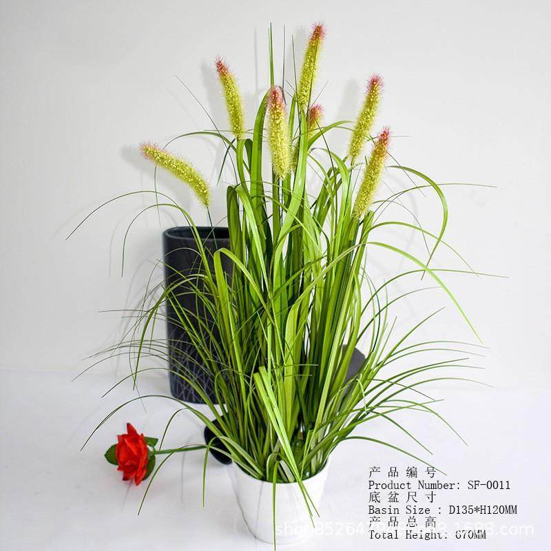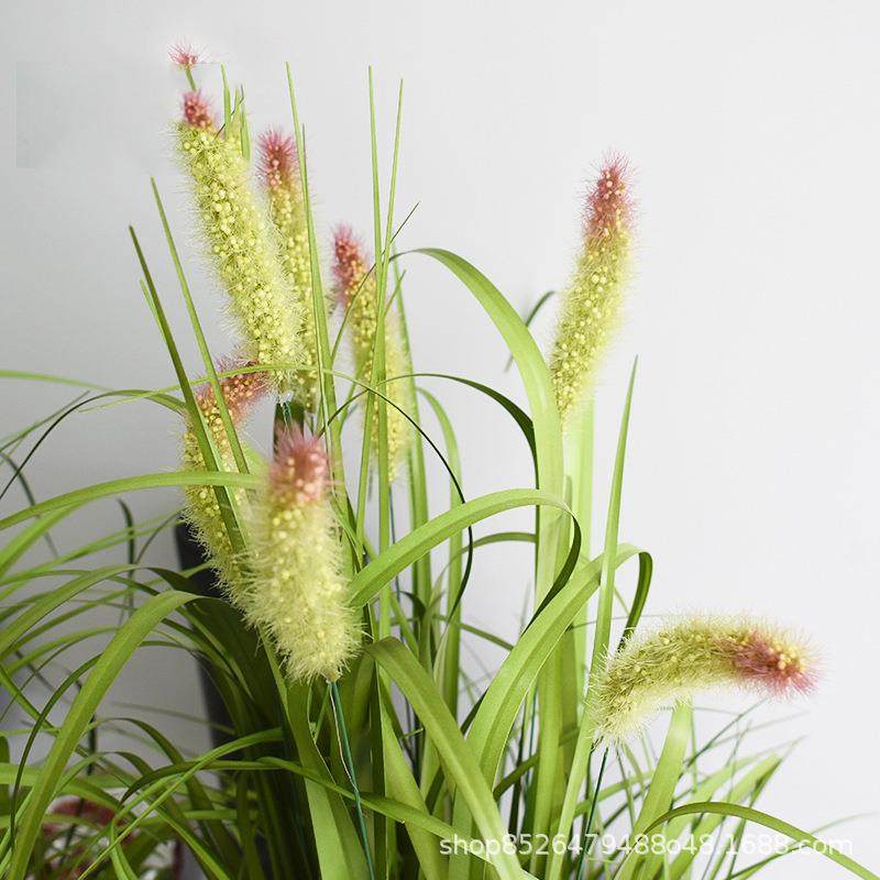 仿真植物草狗尾巴草头绿植造盆景绿化风格绿色红尖人造狗尾巴