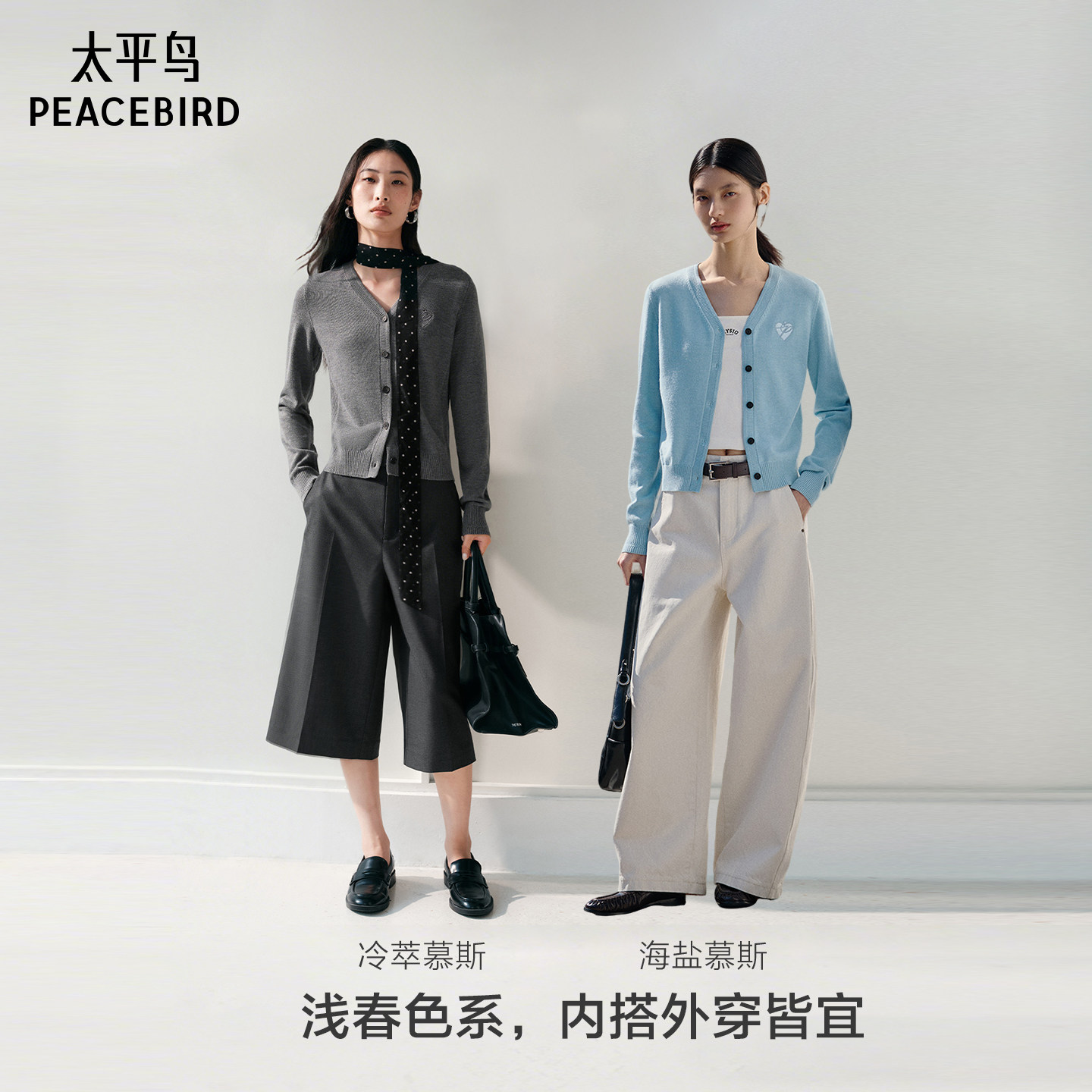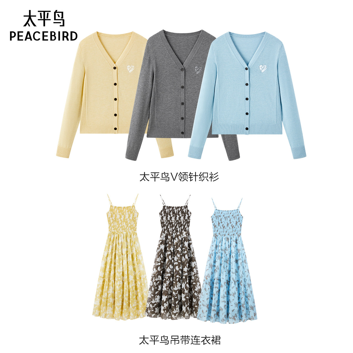 【达播专属】太平鸟V领针织开衫度假碎花吊带连衣裙