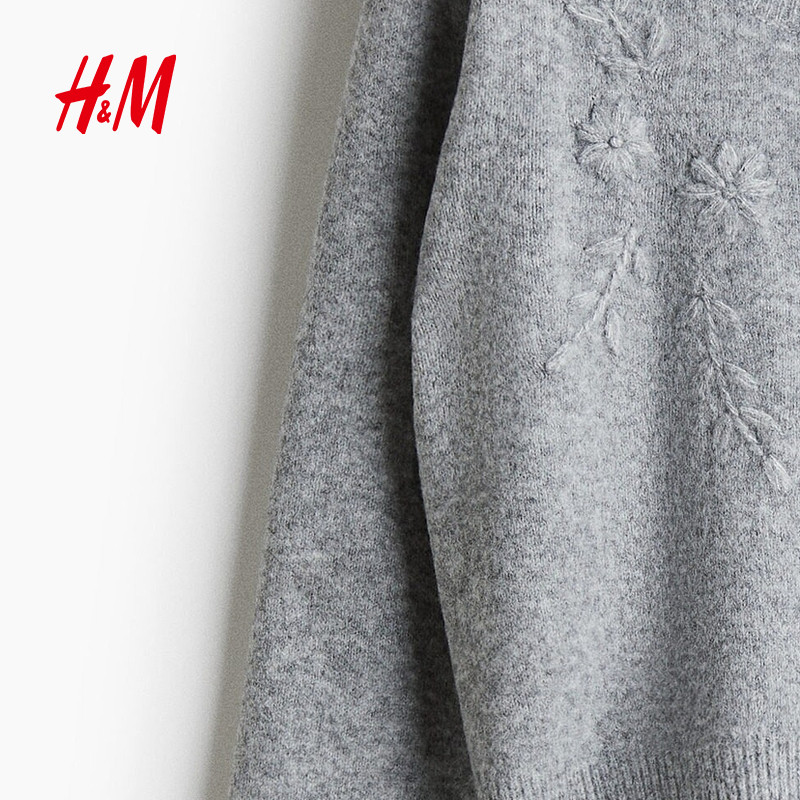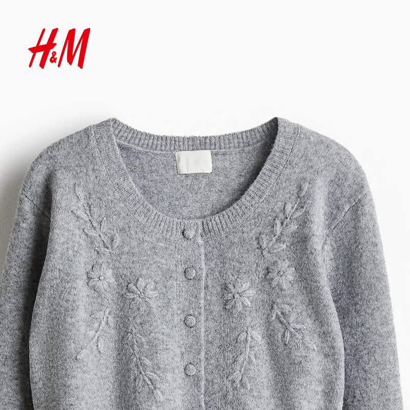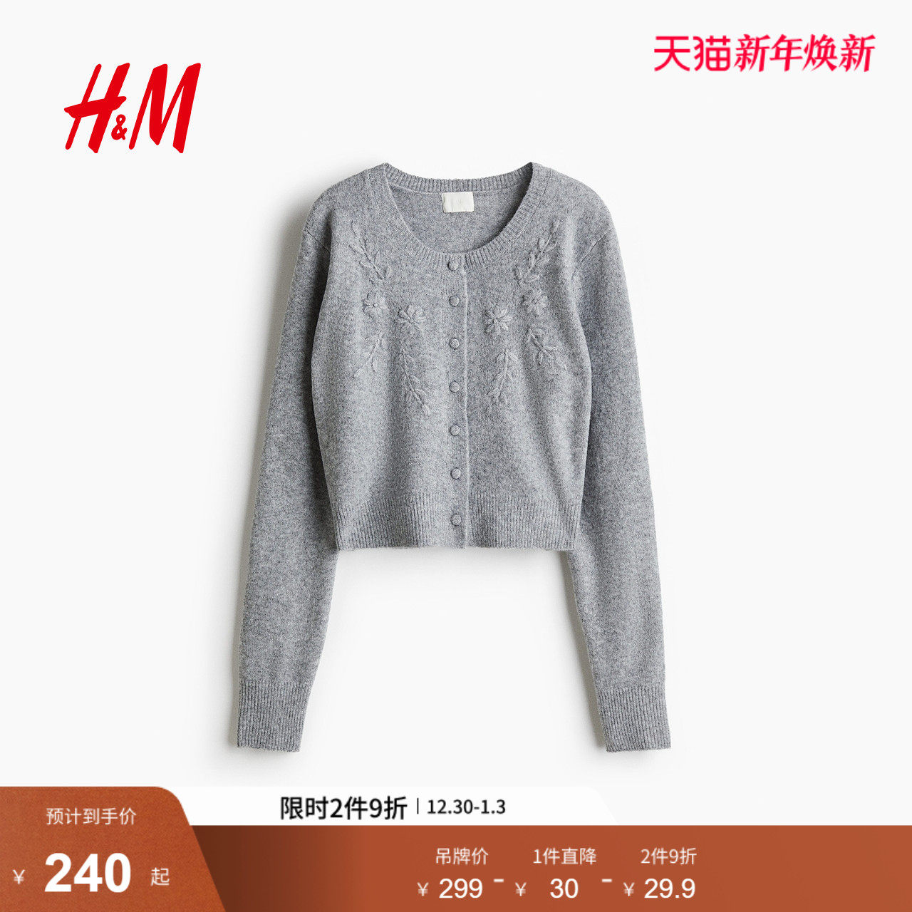 HM女装25冬季新款时尚针织衫刺绣开衫1311711