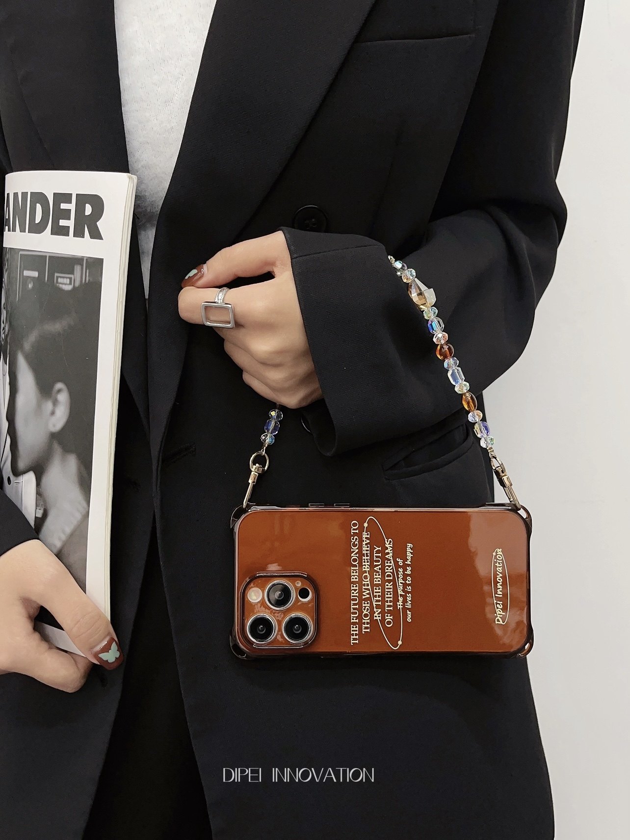 美拉德棕色带手腕链条手机壳15promax镜头全包13适用苹果iPhone14plus四角开孔12Pro斜挎11高级软14复古小众
